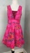 Beautiful Bright pink with blurred abstract floral design. Goldtone metal accents sewn on front chest, and criss cross design in back. Fully lined with crochet trim on the lining. Hidden side zipper. True to size. 100% cotton.