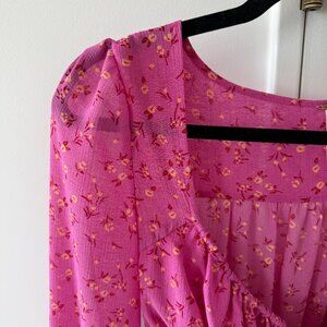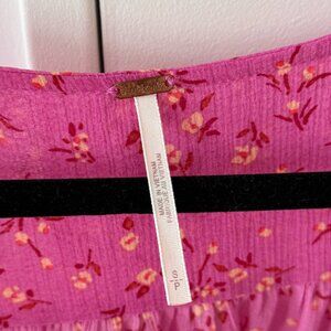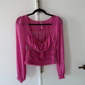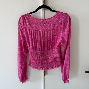 Free People Fuchsia Floral Long Sleeve Cropped Blouse