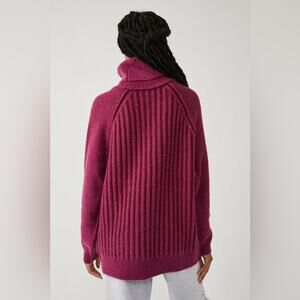 Free People Fuchsia Mulberry Turtleneck Sweater Oversized Pullover Womens XS