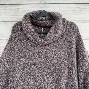 Free People Fuzzy Chunky Knit Oversized Turtleneck Sweater Womens XS Purple Gray