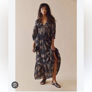 Free People GOLDEN HOUR Black and Cream Maxi Dress
