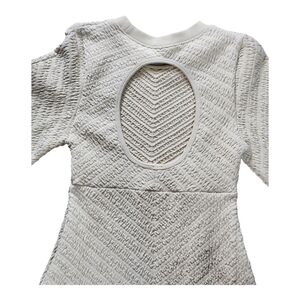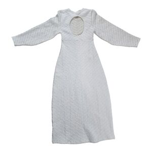 The dress has a flattering midi length and features long sleeves, making it versatile for various seasons. Its standout design detail is the circular open-back cutout, which adds a bold and modern touch to the otherwise minimalist silhouette. The "Wet Plaster" color is a neutral ivory tone, perfect for pairing with various accessories and footwear. This dress is ideal for casual outings, elevated everyday wear, or even semi-formal occasions.