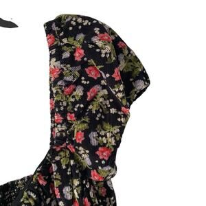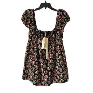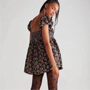 Free People Gaia Print Floral Tunic Mini Dress Black Corduroy size small