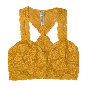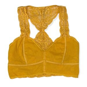Free People Galloon Racerback Bralette Lace Stretch Base Layer Bra Gold Size XS