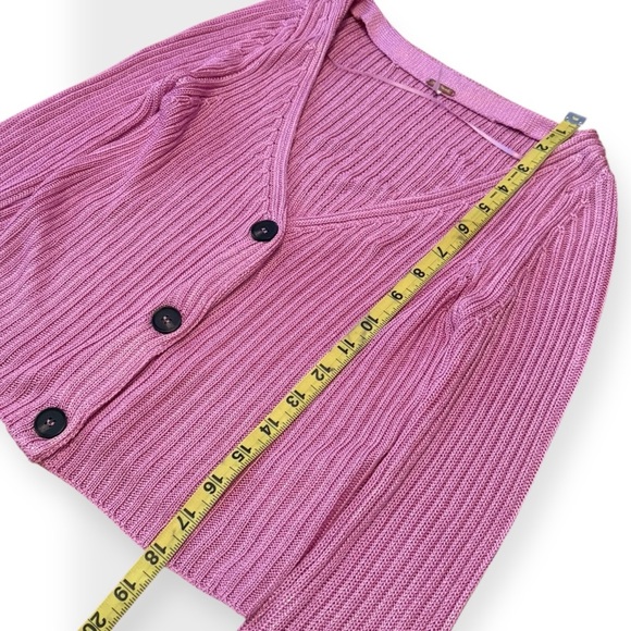 Free People Game On Pink Cardigan Button Up V-neck Open Knit Size XS Crochet