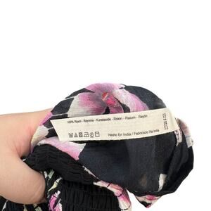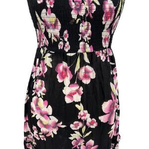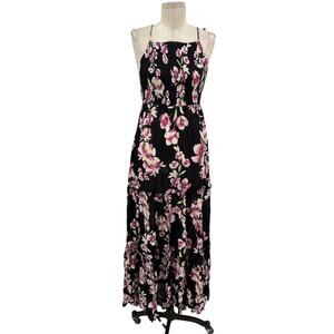 Free People Garden Party Maxi Dress Black Pink Floral Print Smocked Size XS