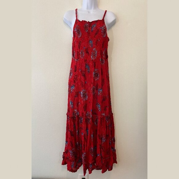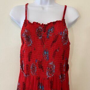 Free People Garden Party Midi Smocked Dress Size Large Red Floral