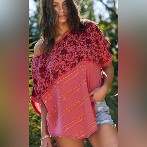 Free People Garnet Royal Combo Red Top Oversized Size M