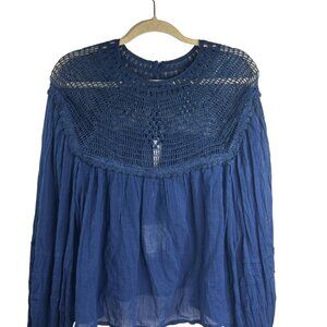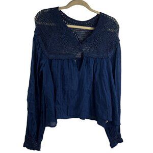 Free People Gauze and Crochet Long Sleeve Top Size XS Midnight Blue NWT