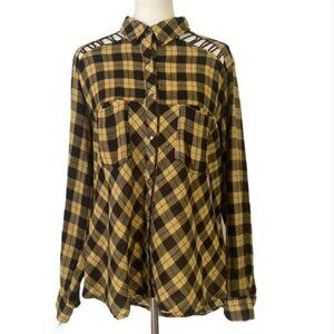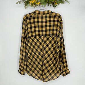 Free People Gauzy Plaid Lace-Up Button Down Shirt Size Large