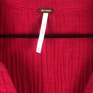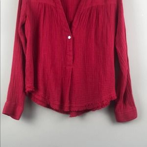 Muted red gauzy v-neck top from Free People. Raw edge hem. Good used condition. Size XS.