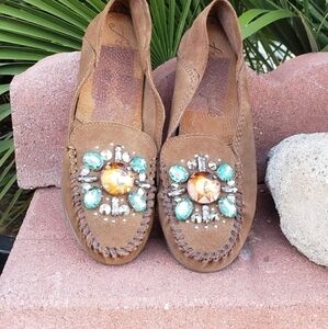 Free People Gem Stone Leather Loafer Moccasin Brown Women's