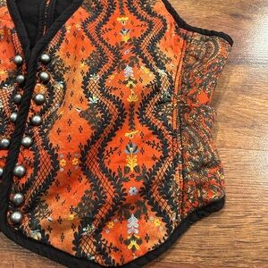 Great condition- no holes or stains. I was bummed when this didn’t fit me because I really love it. It’s so beautiful and well made. Free People Gemini Quilted Vest Women’s Size Small Rust Combo Boho Festival.