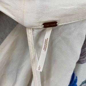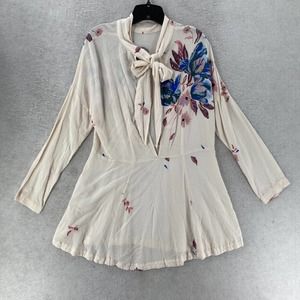 Free People Gemma Tunic Mini Dress Ivory LARGE Floral Mock Neck Keyhole Back
