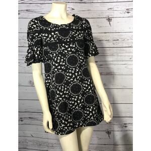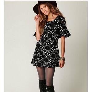 Free People Geo Garden Ruffle Sleeve Mini Dress in black & white size 0