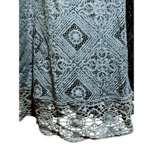 Free People Geo Sands Lagoon Green Crochet Lace Cold Shoulder Tunic Top