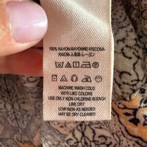 Free People Geometric Top Gray Orange V-Neck Snap Front Bow Long Sleeve Sz L