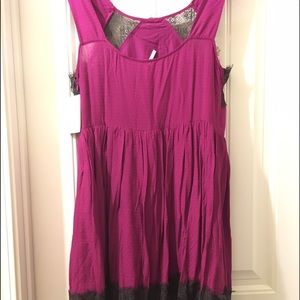 Free People Georgia Dress - Color: Plum - Size: 8 - New with Tags - Smoke-free Home. This dress is lovely, the fabric is light and the eyelash lace enhances the femininity of the dress. Plenty of movement through the bottom portion of the dress from the ruching at the waist. Lining built in.