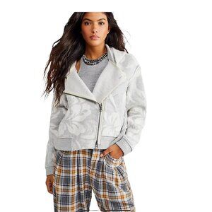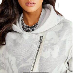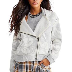 Free People Georgia Wool Sweater Jacket in Gray Floral Size XS NWT