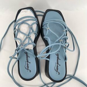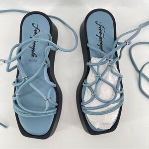 Free People Georgie Blue Wrap Gladiator Platform Open Toe Wedge Sandals Size 9