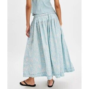 Free People Gesibelle Printed Maxi Skirt Eyelet Embroidered Cotton XS New 279849