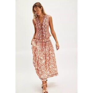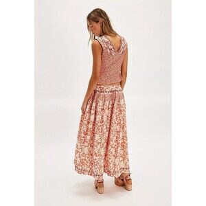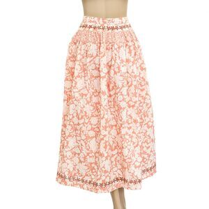 Free People Gesibelle Printed Midi Skirt Eyelet Embroidered Cotton L New 280384