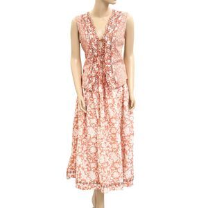 Free People Gesibelle Printed Top & Maxi Skirt Set Eyelet Embroidered L 279621