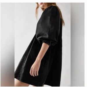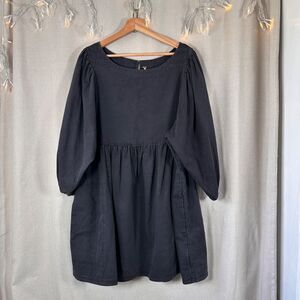 Free People Get Obsessed Denim Babydoll Mini Dress Black Size X-Large Pockets