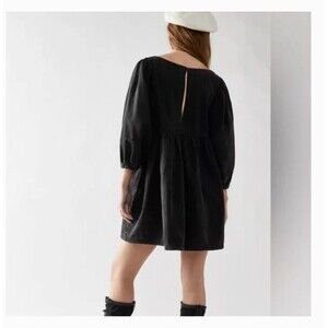 Just as sweet as it is essential, this throw-on-and-go mini dress is featured in a forever classic babydoll silhouette with exaggerated sleeves for added shape. *Fit:* Shapeless, relaxed fit *Features:* Button closure at back, raw seaming at waist, pleating for dimension *
