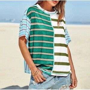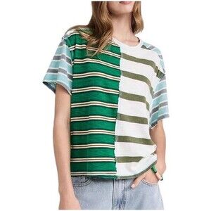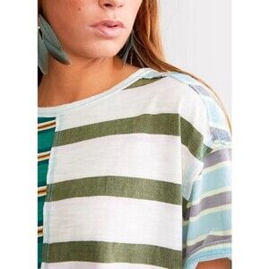 Free People Get Real T-Shirt Oversized Medium S/S Color-block Striped Green New