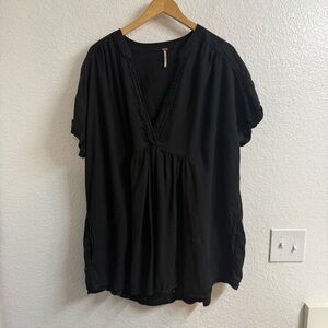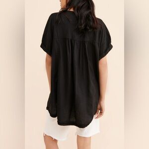 Lightweight, washed cotton feel + babydoll silhouette w/ lower back hemline