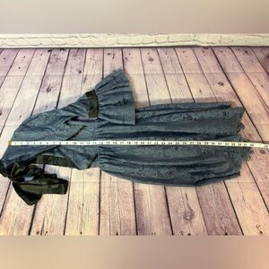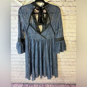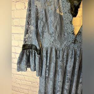 Free People Gilded Victorian Dusty Blue Black Satin Ribbon Trim Lace Dress S