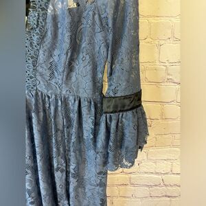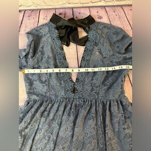 Gilded Lace Victorian Mini Dress Dusty Blue Small Lace mini dress inspired by decades past