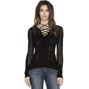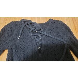 Free People Ginger Lace Up Criss Cross Sweater Top Black Womens XS Knit Crochet
