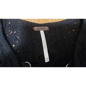Free People Ginger Lace Up Criss Cross Sweater Top Black Womens XS Knit Crochet.