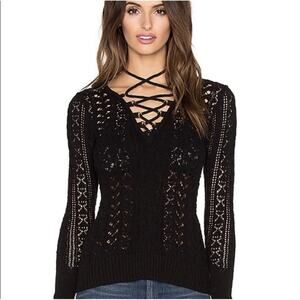 Free People Ginger Lace Up Knit Sweater Goth Whimsigoth Boho Sheer Front Tie