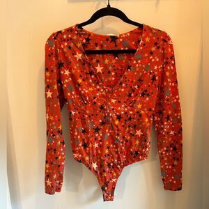 Free People intimates bodysuit, Star Patterned. Long sleeves with a cute puff/gathered detail at shoulders. V-neckline. Snap closure.