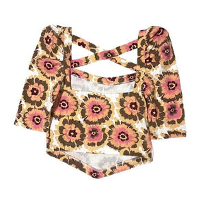Free People Give Me More Multi Floral Ivory Combo Crop Top Size Small