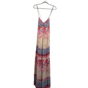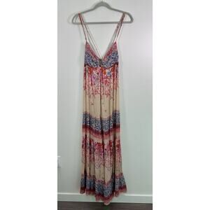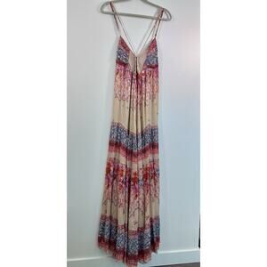 Free People Give a Little Maxi Dress Rare Neutral Multicolor Strappy Slip Boho L