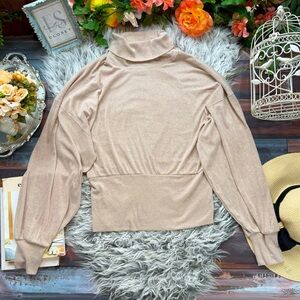 Free People Glam Sparkle Cowl Neck Pullover Sweater Pearl Dust Glitter Champagne