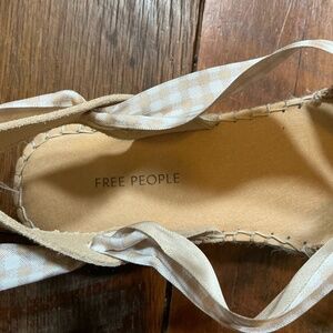 Free People Go For Gingham Wrap Sandals Natural Espadrille Tie Up Shoes Women’s Size 8