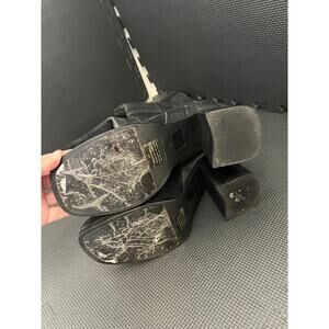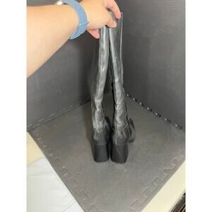 Free People Gogo Boots Black Leather Rave Festival Chunky Heel Knee High Size 10