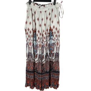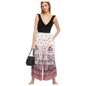 Free People Gold Dust Printed Wide Leg Flowy Boho Pull On Pants Size Small