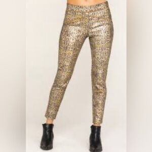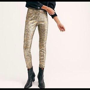 Free People Gold Metallic Snakeskin Print Leggings