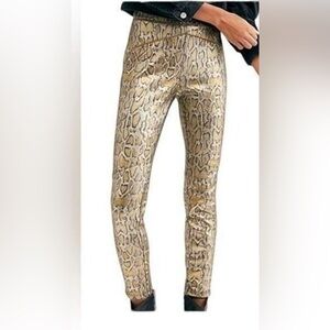 FREE PEOPLE Glistening Gold Metallic Chic Pull On Snakeskin Leggings no stains no rips or non-smoking home size extra small super comfy