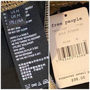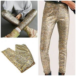 Free People, Gold Python Pull On Skinny Pants, Vegan Leather, Metallic Gold, NWT
