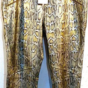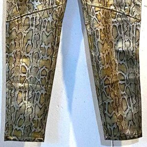 Brand New with Tags, Gold Python Vegan Leather Skinny Pants, in metallic gold, silver and black, snake skin print, tight stretch, ultra skinny, with V stitch front hip, stitch fit leg, awesome pants.