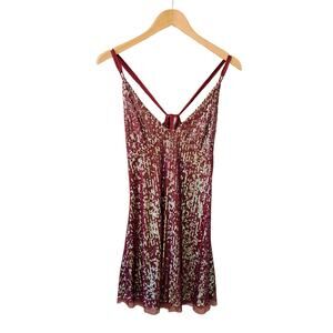 Free People Gold Rush Sequin Mini Dress in Wine Size Small Party Prom Mesh