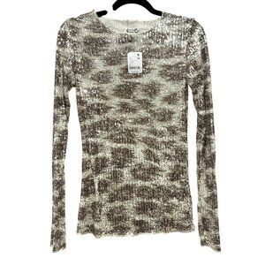 Free People Gold Rush Size XS Animal Print Sequin Top Shirt NWT