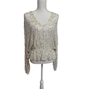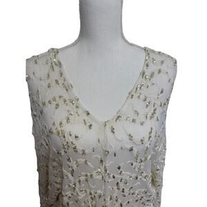 Free People Gold Sequin Blouse Top Sheer Size Small Party